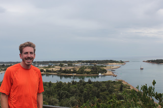 We had hoped to start the day by waking up early, jogging on the beach to the Gippsland Lakes Entrance, and getting on the road early. Instead, we first saw a clock at 9am and hurried to check out of the hotel room on time. To save some money and time we stopped by a grocery store to buy fruit, muffins, cereal, and sandwich fixings for the next two days.